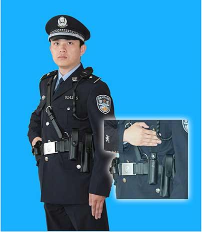 (3)、對講可掛在武裝帶右手邊,左手掛強(qiáng)光手電、伸縮警棍等物。
