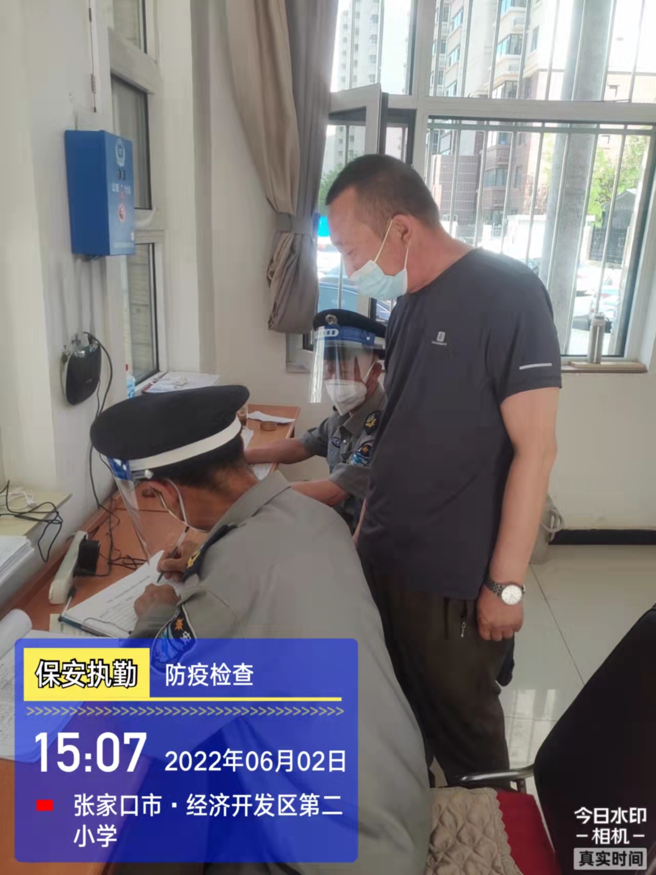 會后,我公司迅速召開“疫情期間學(xué)校門衛(wèi)安全防控工作要求”的會議,制定了校園安全防疫規(guī)定:疫情防控期間,校園保安隊(duì)員必須穿制服,規(guī)范佩戴“三件套”(防護(hù)隔離面罩、N95口罩、一次性PVC手套);進(jìn)出校園的師生必須測量體溫,外來人員需登記、測溫、掃碼(幸福張家口,呈綠碼)、且持7日內(nèi)核酸陰性檢測結(jié)果;保安室需保持干凈整潔,物品擺放有序,勤開窗通風(fēng),定期噴灑消毒藥水。為此,公司特成立校園防疫檢查小組,由副經(jīng)理帶隊(duì),協(xié)同主管大隊(duì)長對經(jīng)開區(qū)所有中小學(xué)校安保崗位進(jìn)行防疫工作檢查,檢查期間,發(fā)現(xiàn)問題,現(xiàn)場處理,并及時(shí)與校方領(lǐng)導(dǎo)溝通,杜絕同樣問題再次出現(xiàn),確保校園防疫安保工作萬無一失,為各校師生鑄就一道安全防線!